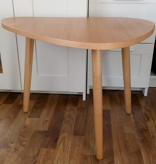 see on kahest lauast kokku pandud laud, pöögist jalad valgest värvist puhastatud, plaadi keskel auk kinni pandud ja kolm kihti värvi peale ka.